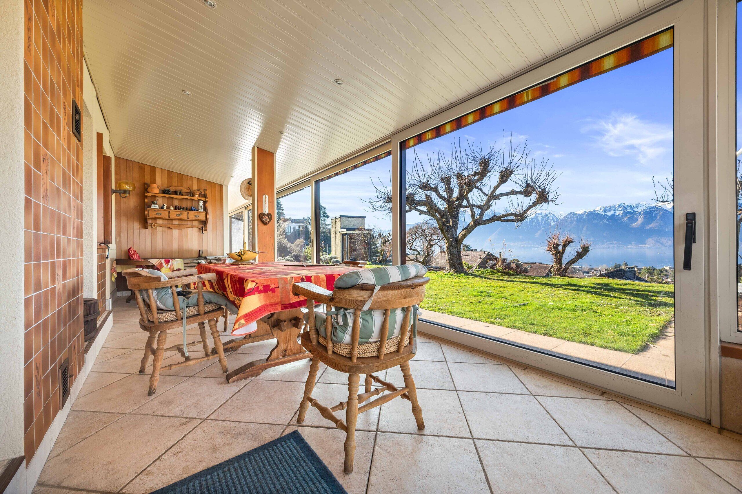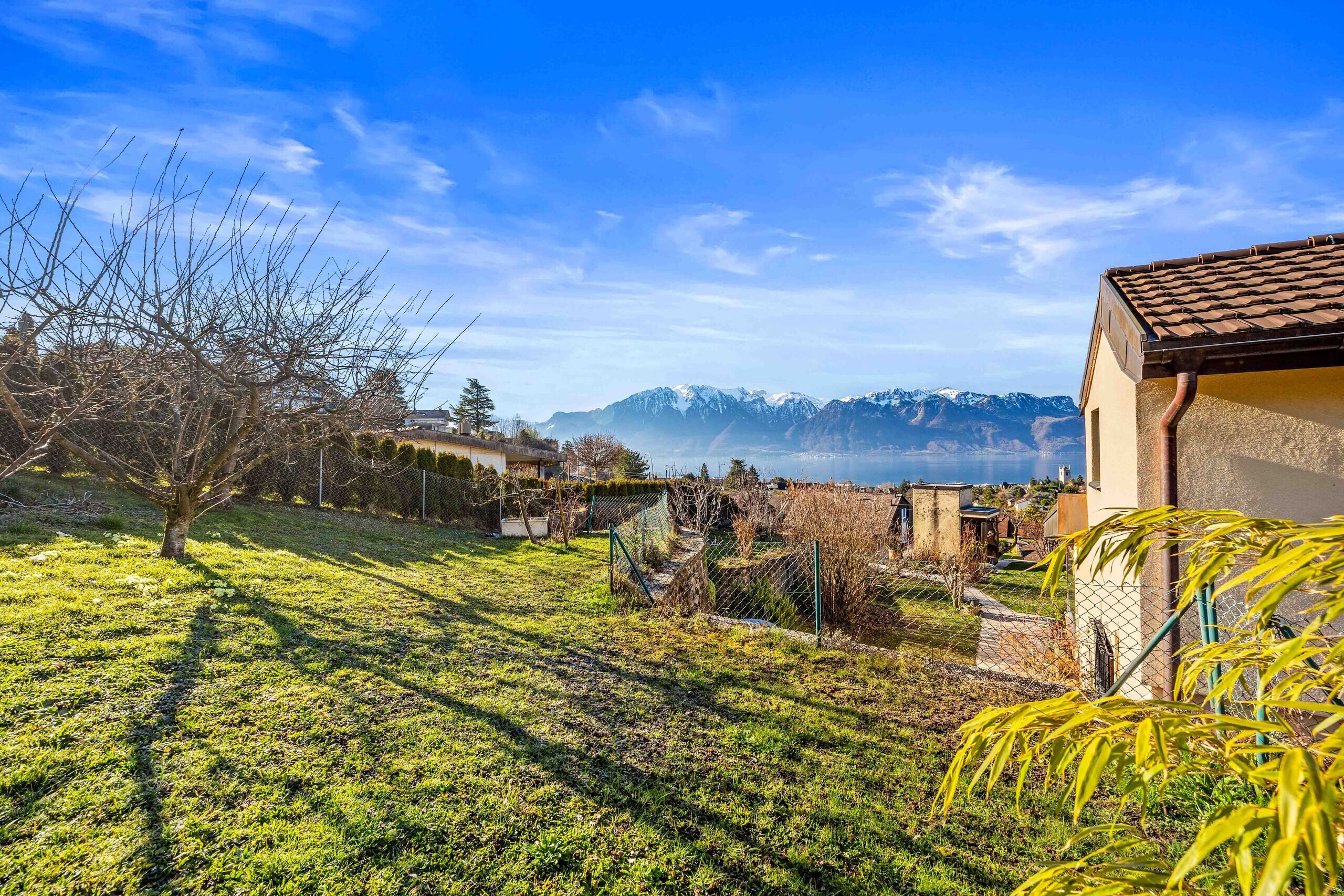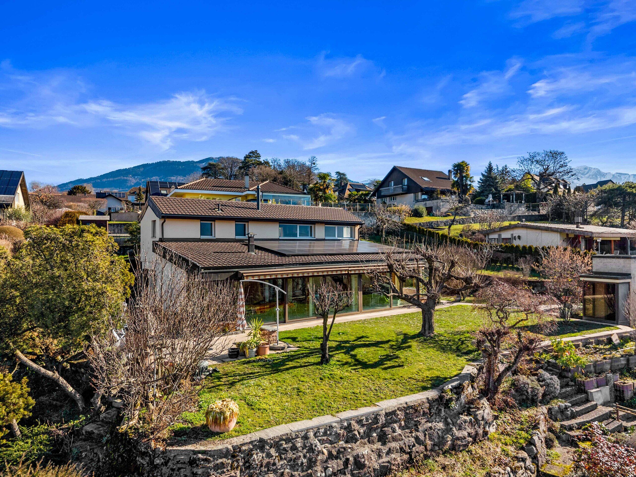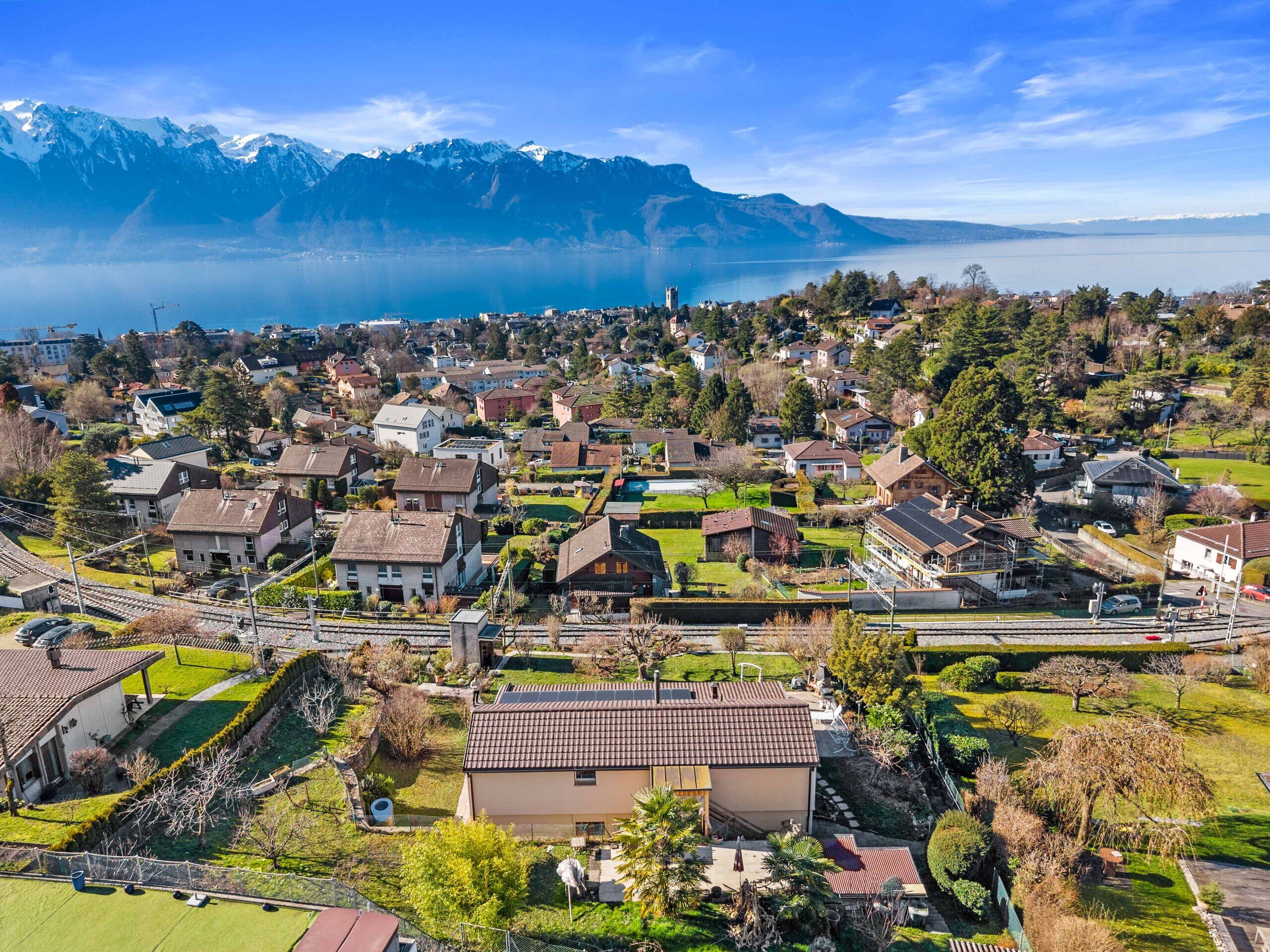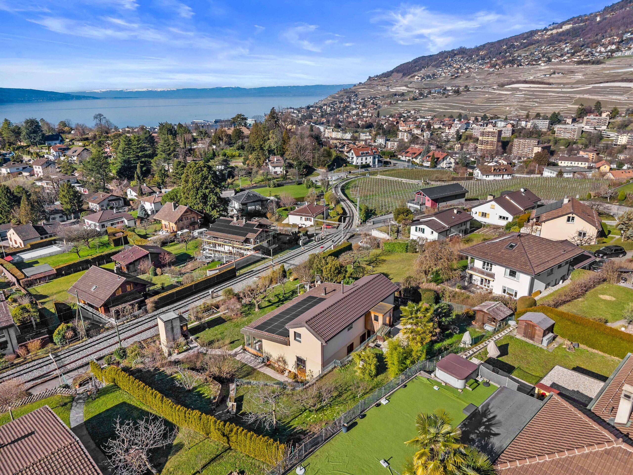 Riviera Properties freut sich, Ihnen diese große Villa mit zwei Wohneinheiten zu präsentieren. Ideal gelegen im Herzen eines ruhigen Wohnviertels im unteren Teil von Saint-Légier-La Chiésaz, wurde sie auf einem Grundstück von 1703m2 gebaut. Diese Immobilie verfügt über einen wunderschönen Terrassengarten, der von einem herrlichen Blick auf den See und die Berge profitiert.