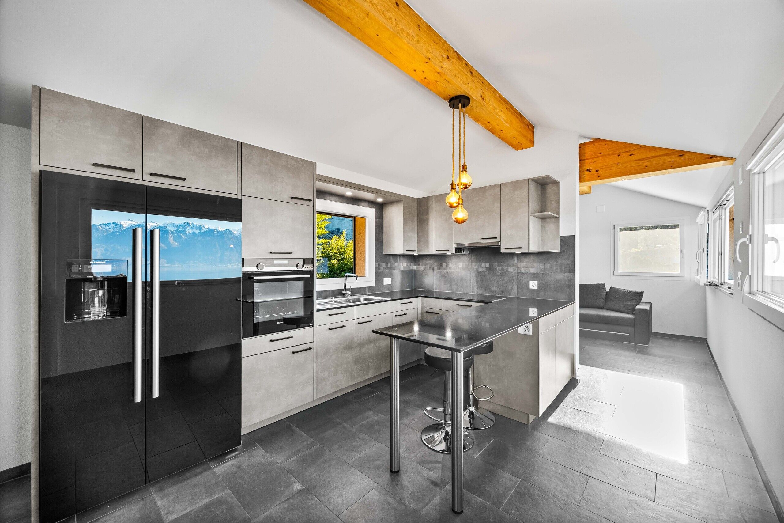 - Großes Wohnzimmer mit offener Küche