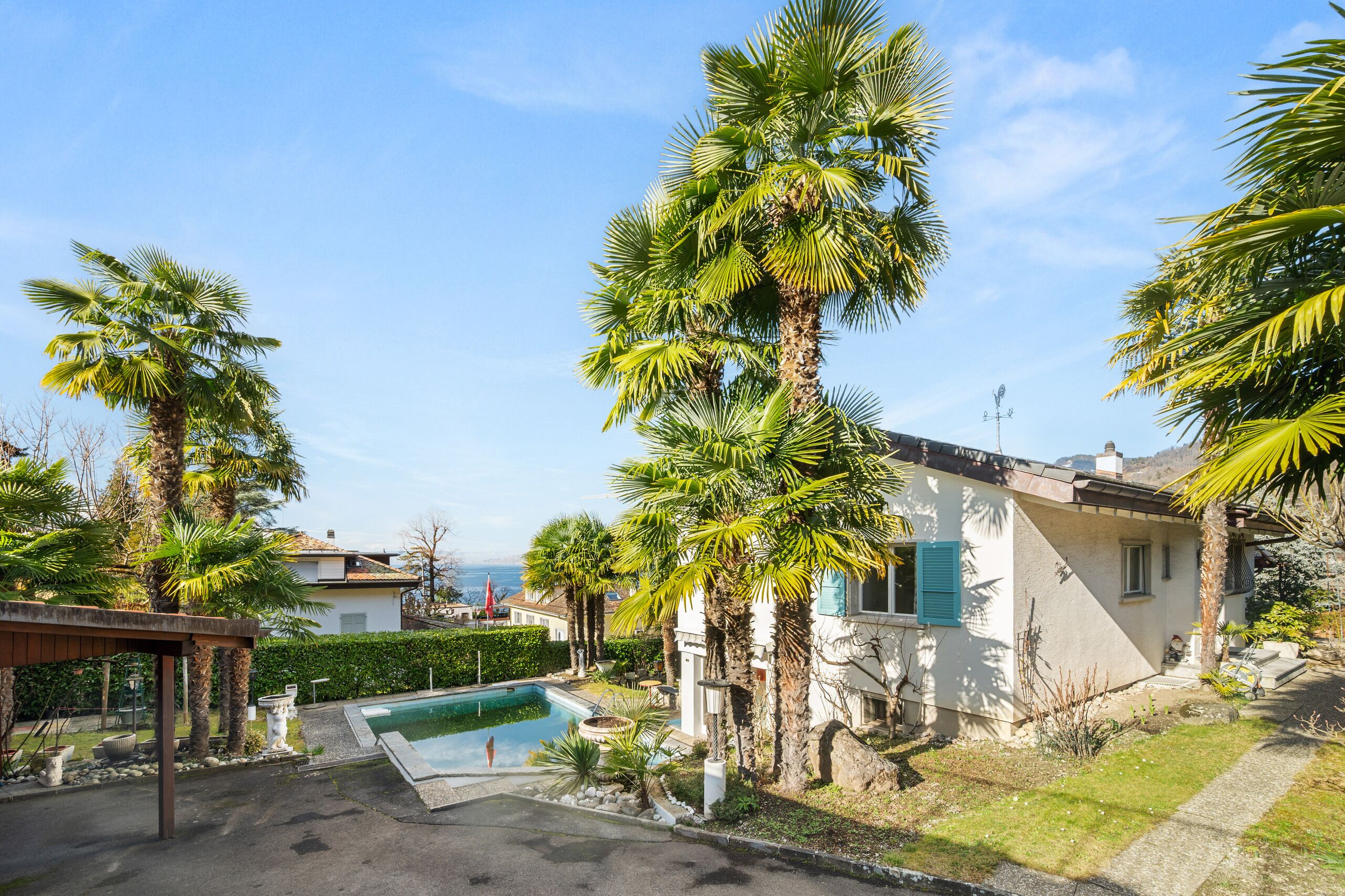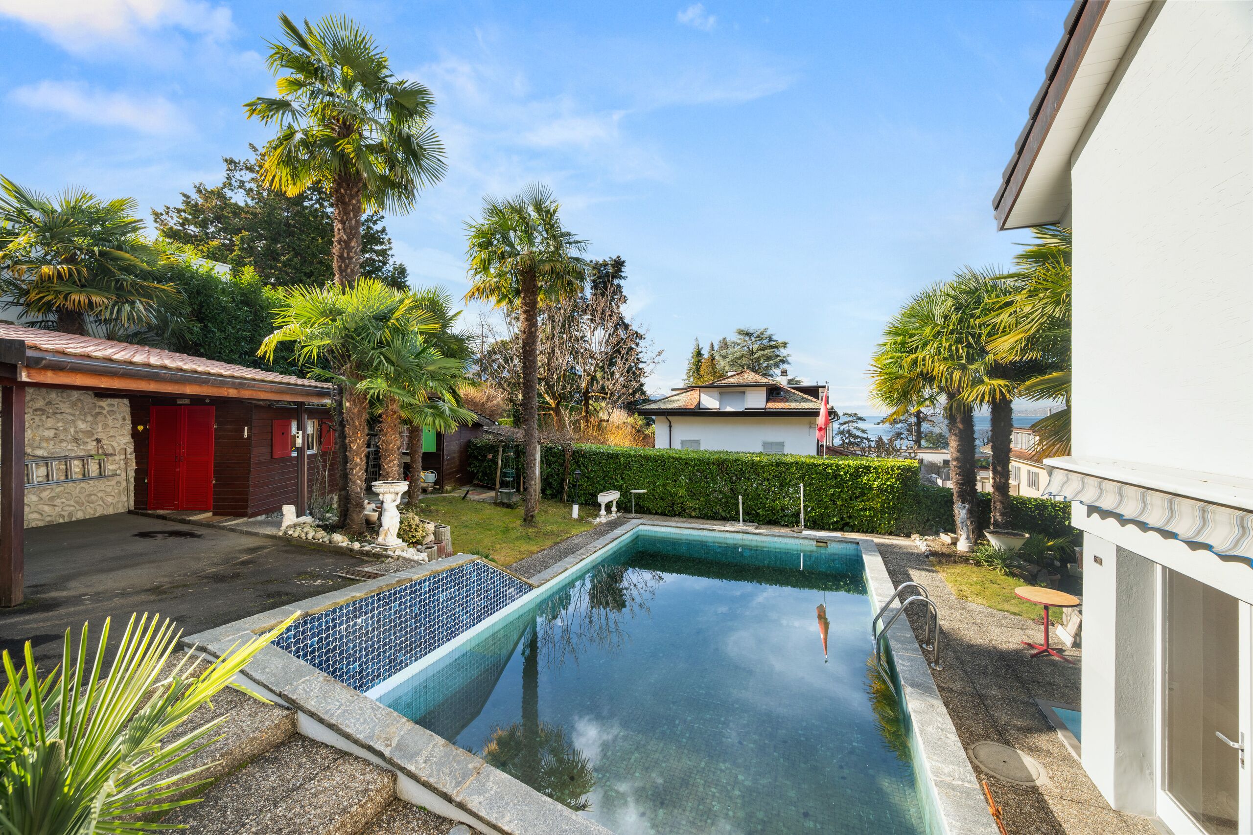 Les extérieurs sont un véritable atout avec un jardin richement arborisé, une piscine et une terrasse accueillante, parfaits pour profiter de la belle saison. Un couvert pour un véhicule ainsi que deux places de parc extérieures complètent ce bien.